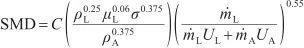 式中(zhong),SMD為(wei)索特爾(er)中位粒(li)徑(jing),C為(wei)常(chang)數且和霧(wu)化(hua)器設計有(you)關(guan),ρ, μ, σ, U和