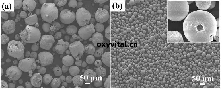 是指(zhi)黏(nian)結(jie)劑PVA (p)或(huo)去離子(zi)水(shui)(w)的含量(liang)。去離子(zi)水(shui)的蒸(zheng)發溫(wen)度(du)為200~295℃,而(er)PVA的分解(jie)揮發溫(wen)度(du)為300~571℃[38]。由(you)於(yu)噴(pen)霧(wu)幹燥的入(ru)口溫(wen)度(du)為225~235℃,因(yin)此去離子(zi)水(shui)可以較(jiao)好(hao)的去除(chu),而(er)PVA則(ze)遺(yi)留(liu)在(zai)顆粒(li)內(nei)。噴霧(wu)幹燥法(fa)制備得(de)到(dao)的YSZ空心粉(fen)體(ti)由(you)於(yu)顆粒(li)強度(du)較弱,在(zai)噴塗應用的過程(cheng)中容易(yi)破(po)碎從(cong)而(er)失去(qu)空心顆粒(li)的特性,因此在(zai)使(shi)用前需要(yao)對顆粒(li)進(jin)行高(gao)溫(wen)燒結(jie)以提升(sheng)其(qi)強度(du)。